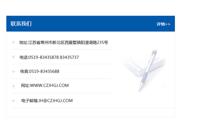 地址:常州市新北區友邦商務大廈1幢16、17層  電話:0519-85101652  傳真:0519-85112595  郵編:213022  網址:www_cz-jiayue_cn.caihao020.com  郵箱:xiajifengaa@163.com
